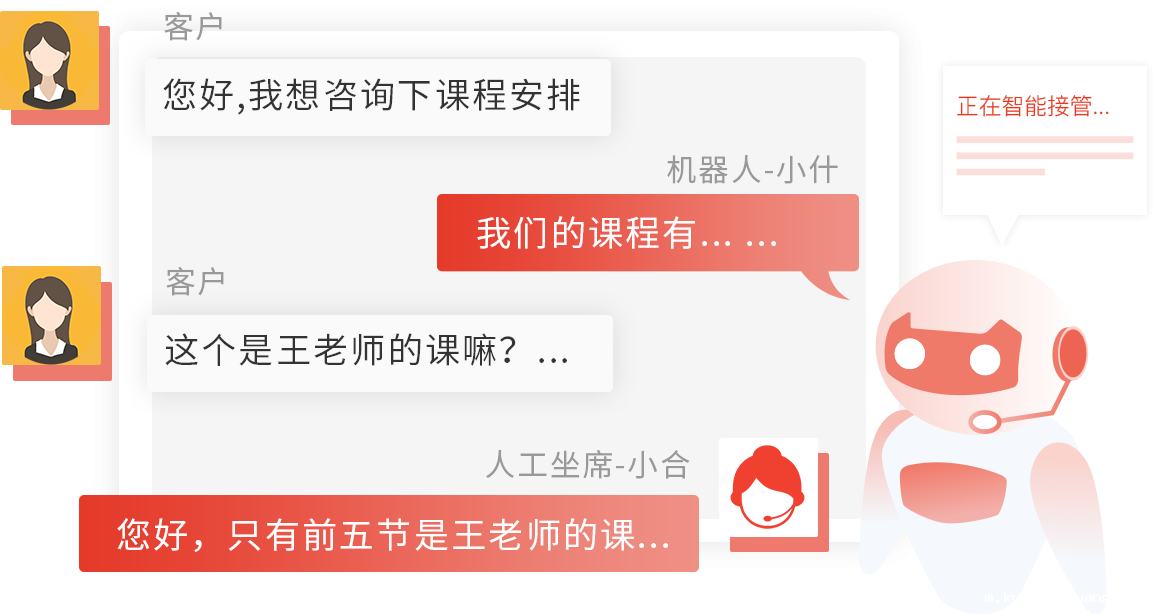 用于产品咨询、售后服务、满意度度调查、用户回访等场景,精确识别用户意图,智能应答