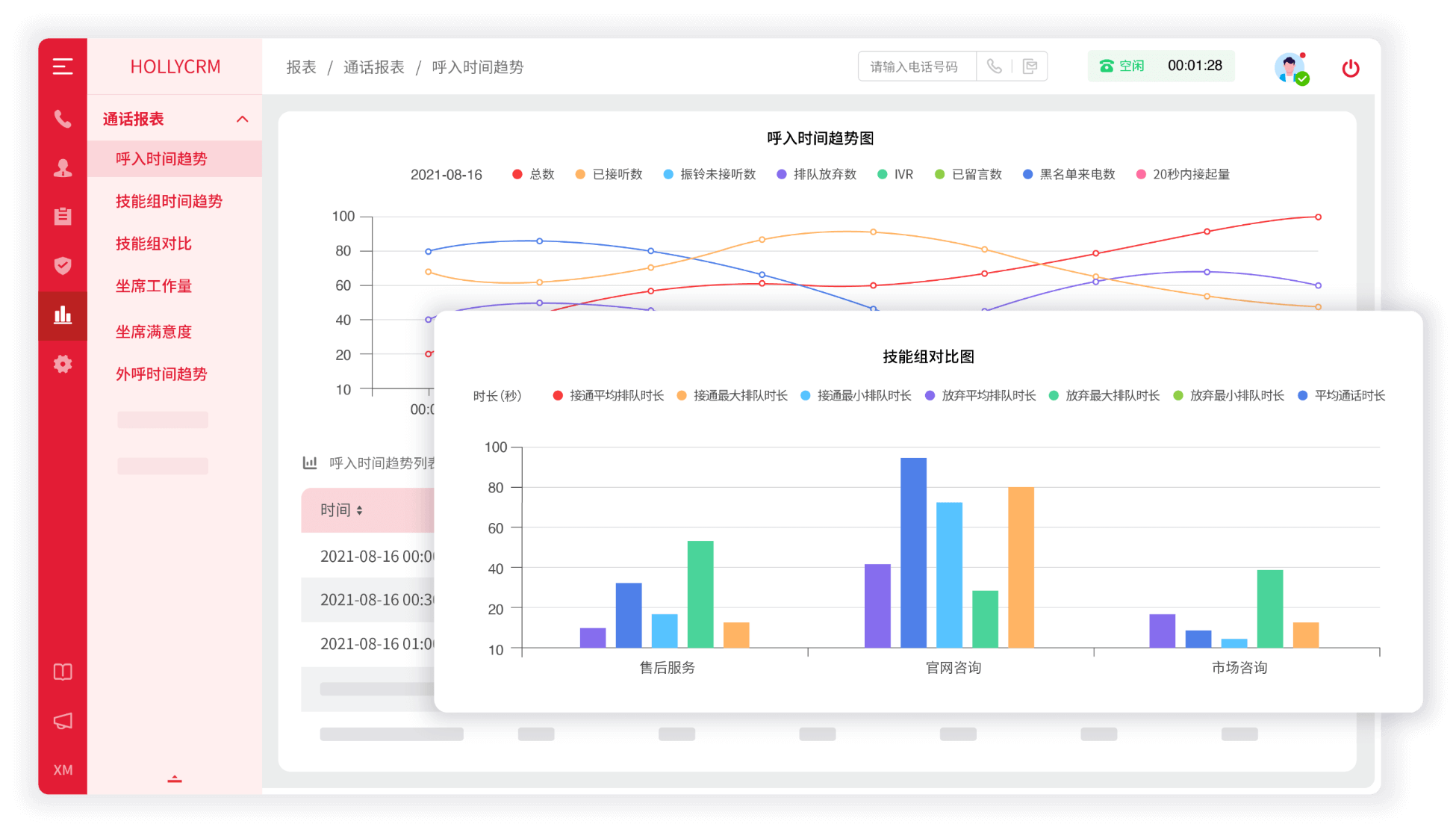 帮助坐席实时掌握自己的通话数据