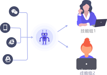 电话、APP、微信、官网等渠道统一对接到智能客服平台智能识别客户意图,将复杂问题智能转接到对应的技能组降低客服难度。